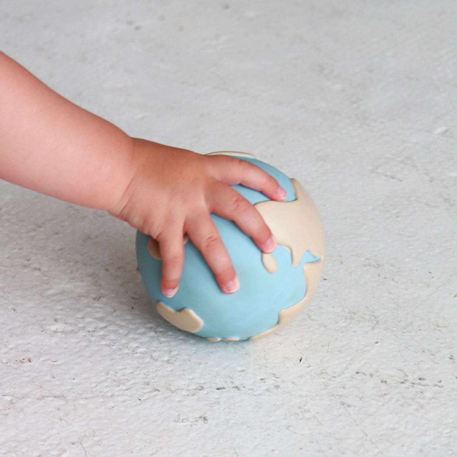 EARTHY the WORLD BALL is a natural rubber baby toy for teething, bath time and sensory play. Hand painted with natural pigments for safe and worry-free play!