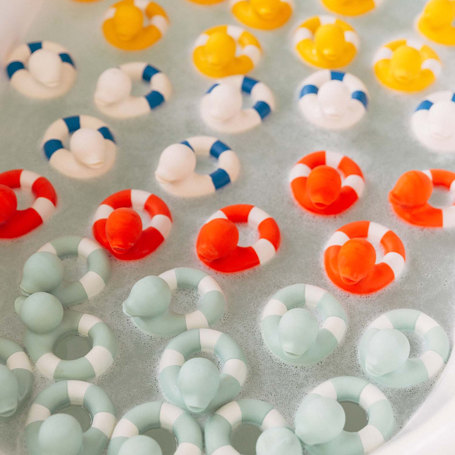 Inspired by the classic lifeguard ring, Flo the Floatie Navy puts a modern twist on the traditional rubber duckie from Oli&Carol. Ready to make a splash with kids during bathtime, it's also perfect as a baby teether, sensory play toy, and decorative object. Crafted in one seamless piece without any holes, it ensures 100% bacteria-free playtime.