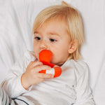 FLO THE FLOATIE RED is a natural rubber baby toy for teething, bath time and sensory play. Hand painted with natural pigments for safe and worry-free play!