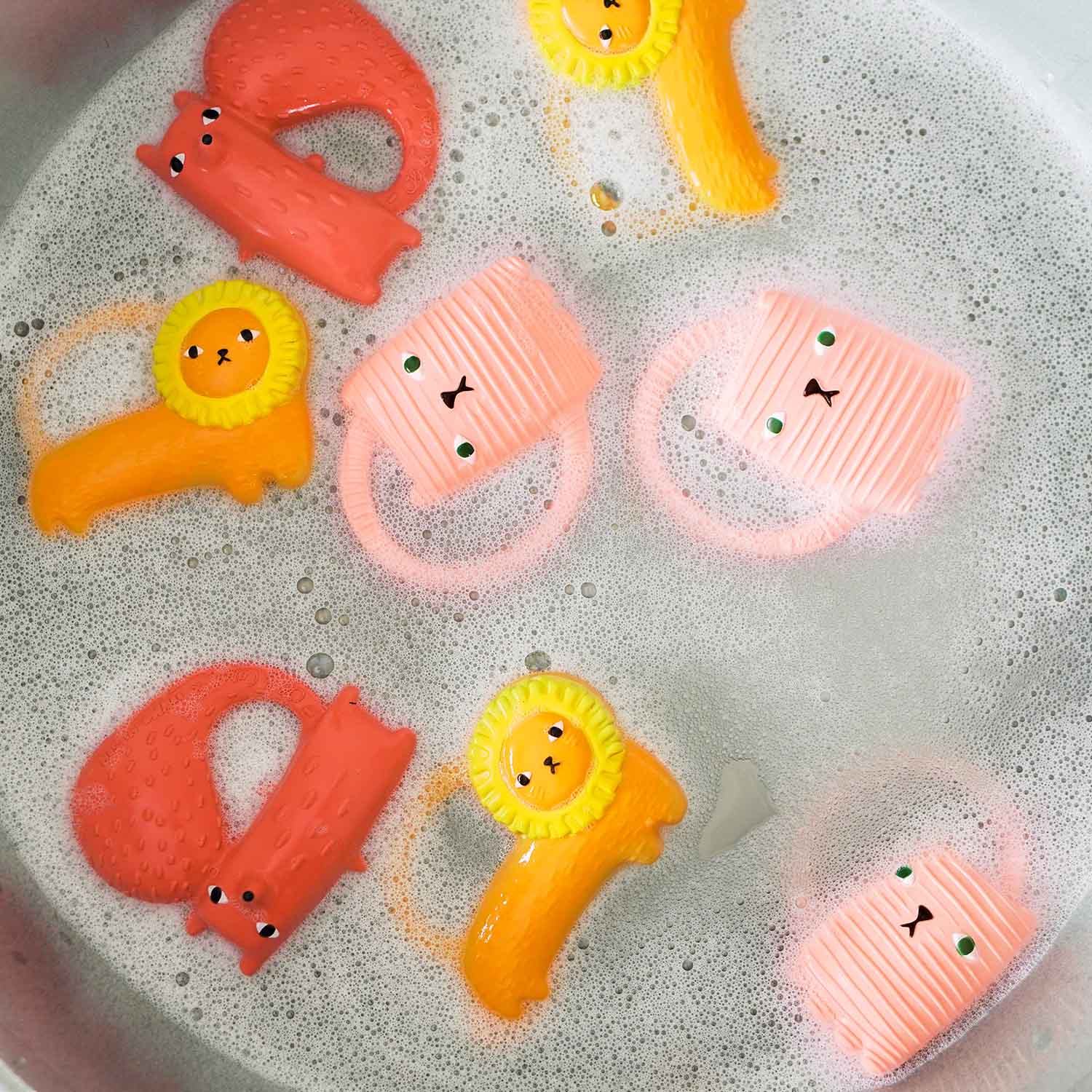 Richie Lion is a chewable baby teether, baby bath toy and sensory play toy. Designed with a long tail in the shape of a handle; easy to hold and chew on for babies. Including a range of textures, such as ribbing, making it very pleasing for little ones to soothe teething gums. - This baby teether is easy-to-hang from a strap & take it everywhere you go!