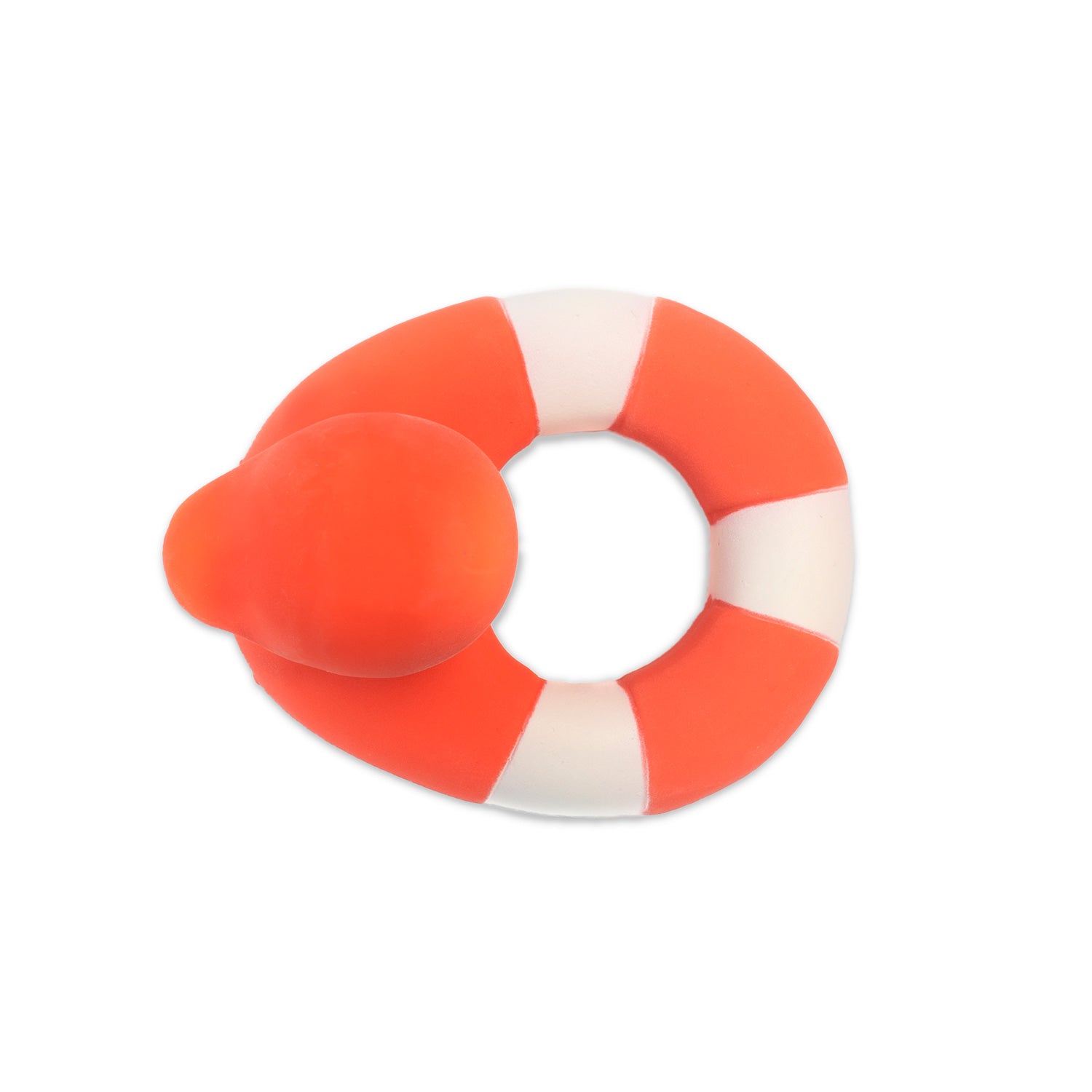FLO THE FLOATIE RED is a natural rubber baby toy for teething, bath time and sensory play. Hand painted with natural pigments for safe and worry-free play!