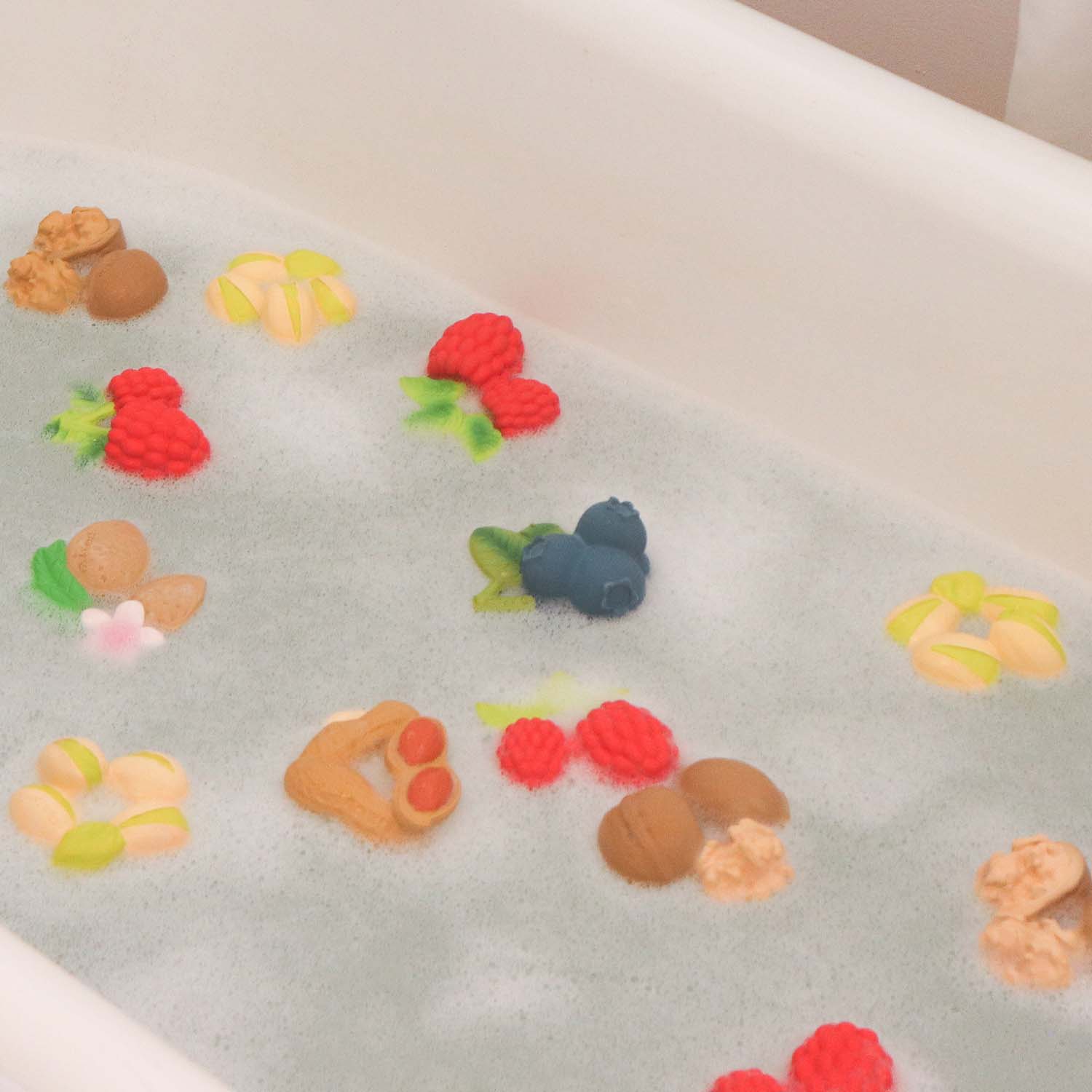• Store in a dry place. If left on the side of a bath or on tile that may be slightly wet or moist, the toys will start to mold (like any natural products). Air drying between use, is recommended.