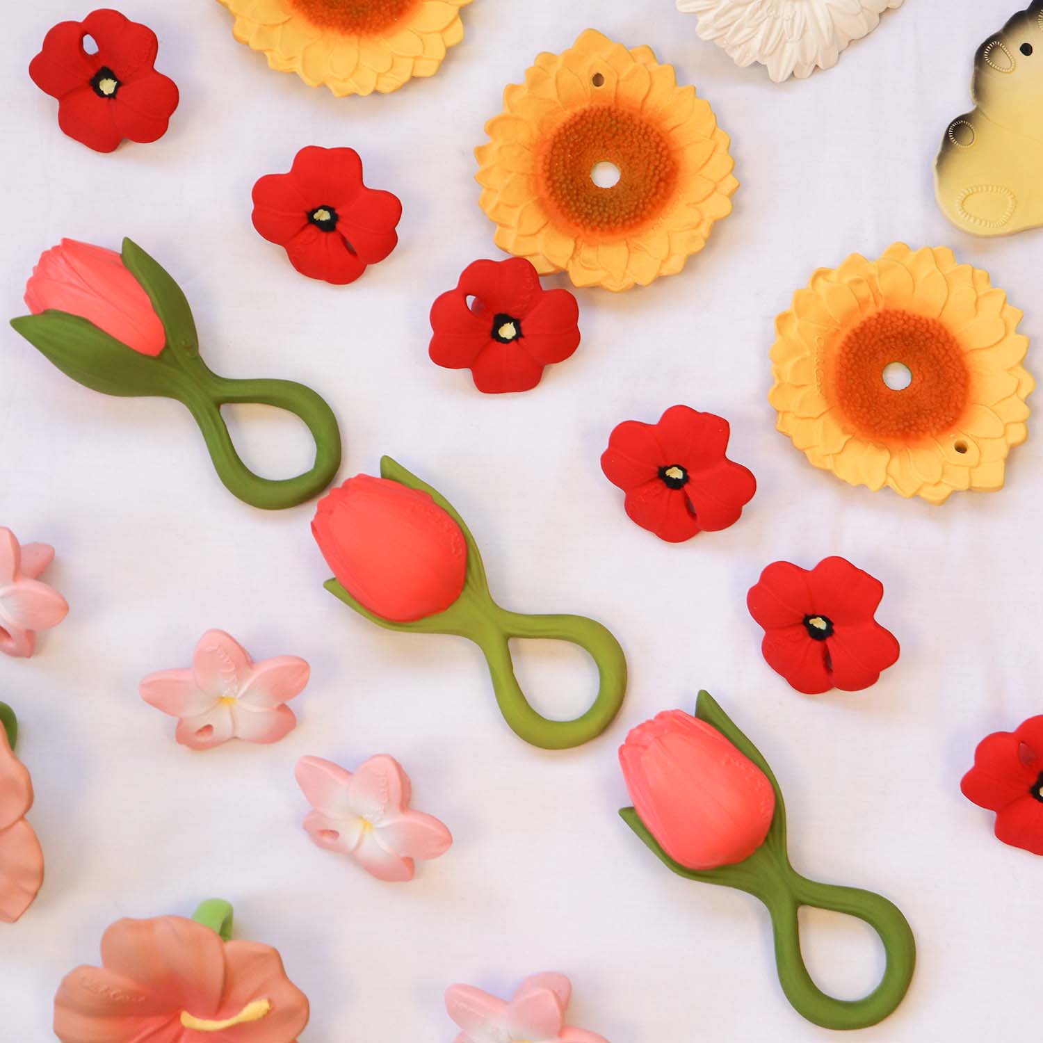 Theo the Tulip is a teether, bath toy & sensory play toy for babies. Its ring makes it easy for babies' little hands to hold while chewing on a safe natural teether. A wide variety of texture will also stimulate babies’ senses and soothe teething gums. Make kids love the environment that surround them with our Garden family!