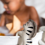 ZOE THE ZEBRA is an animal-shaped bracelet for teething and sensory play. Little gums will love the texture of the natural rubber. Soft, easy to grip and place around the wrist. Safe and worry free play!