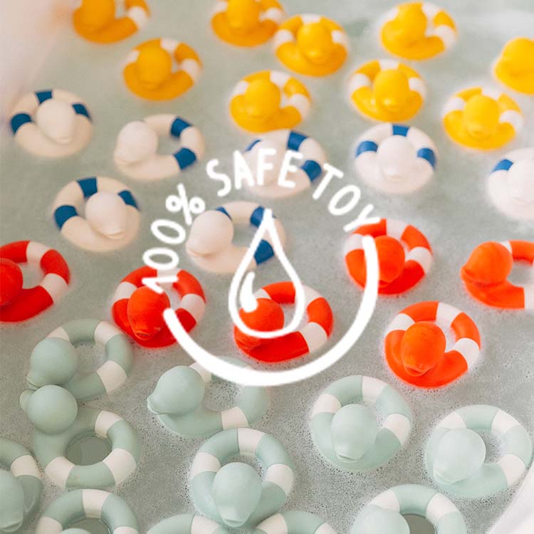 Our designs are made with 100% natural rubber from Hevea trees. Say no to synthetic, plastic or silicone toys and choose to care for the planet! Natural rubber is flexible and soft, easy to grasp for babies, squeezable and safe to chew. Little baby gums love the texture of Hevea rubber.